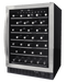 La meilleure façon de refroidir et d'exposer votre précieuse collection de vins blancs et rouges est d'utiliser le refroidisseur à vin tendance et pratique de Danby. Faites passer votre divertissement au niveau supérieur avec l'ajout d'un refroidisseur à vin intégré avec refroidissement par air forcé et d'un écran LED à bouton sans contact dans votre bar ou votre îlot. Cette unité spacieuse offre 5,7 pieds cubes d'espace de refroidissement pour jusqu'à 60 bouteilles (750 ml) de vos vins préférés sur de jolies étagères de rangement noires. L'éclairage intérieur à LED bleues, lumineux et moderne, met magnifiquement en valeur les bouteilles à travers une élégante porte en verre trempé conçue pour protéger votre collection des rayons ultraviolets potentiellement nocifs. De plus, le thermostat vous permet de programmer et de maintenir facilement la température interne entre 41 °F et 64 °F (5 °C et 18 °C). Cet appareil apprécié est également doté d'un cadre de porte en acier inoxydable avec verre à double vitrage et d'une poignée assortie. De plus, il est livré avec une porte battante réversible vous permettant de l'ouvrir du côté gauche ou droit selon vos préférences.